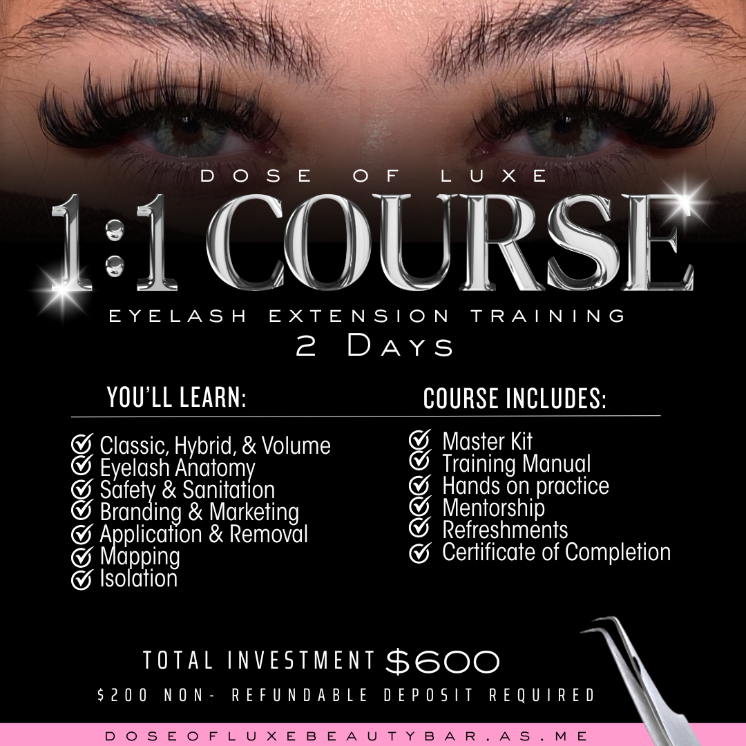 Our training programs are designed to elevate aspiring lash artists with the perfect balance of theory, technique, and hands on practice. Each course is taught by a licensed professional and tailored to meet students where they are, whether they’re refreshing their skills, building confidence with volume sets, or starting their lash journey from the ground up.